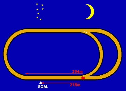 今までの門別競馬場のコースは直線部がバック側とホーム側がそれぞれ400mあって、コーナー部も400mずつの1周1600mのコースだったわけですが、内回りコースになるとコーナーの長さは同じで、直線部分がバックストレッチが288mで4コーナーの終わりからゴールまでの直線が218mとかなりコンパクトになります。